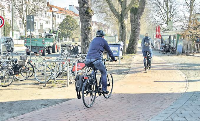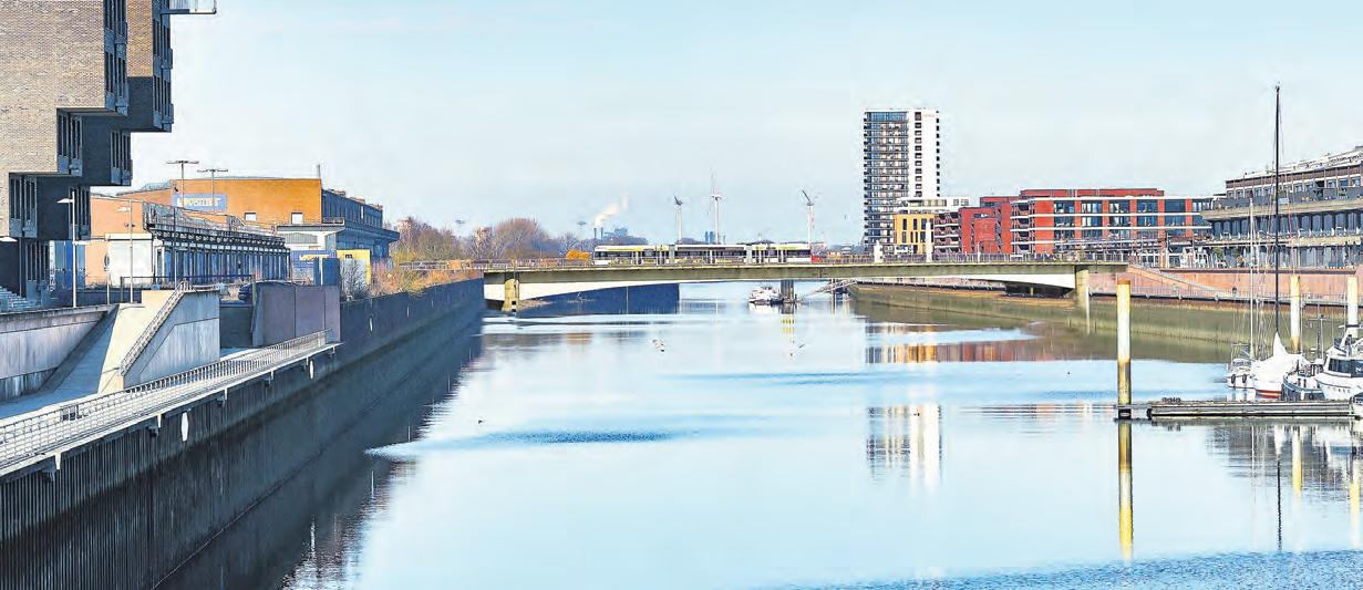 erschließt. Für die Bevölkerung ergeben sich so Wege von bis zu zwei Kilometern. Mehr Buslinien, unterstützt durch den Einsatz von Fähren, würden die Situation kurzfristig entschärfen, so Brodbeck. Generell fordert der VCD das Mobilitätsressort auf, deutlich schneller zu planen. Die Straßenbahnlinie in die Überseestadt und die dafür notwendige Brücke sollen nicht vor Mitte der 2030er Jahre realisiert werden, erklärt Aygün Kilincsoy. Die Europahafenbrücke würde dementsprechend in das Jahrzehnt der Bremer Brücken fallen. Gleichzeitig soll der Neubau der Bürgermeister-SmidtBrücke stattfinden. Auch die Fahrradbrücken, die sogenannten Wesersprünge, sollen zumindest ihren Baubeginn in den 2030er Jahren feiern. Wann die Straßenbahn in der Überseestadt fahren wird, bleibt unklar.