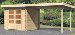 KARIBU GARTENHAUS BASTRUP 5 / DELME 5 MIT ANBAU Bausatz aus Nadelholz unbehandelt mit 3 Meter Anbaudach, Außenmaß: ca. B 614 x T 297 cm,