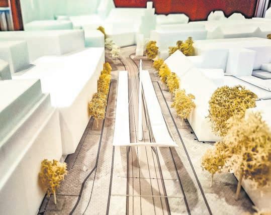 Das Modell der Domsheide aus Sicht der Balgebrückstraße zeigt vier Meter breite Bahn- und Bussteige – noch ohne Details. Deren Planungen beginnen jetzt. Foto: Marcus Schmidt