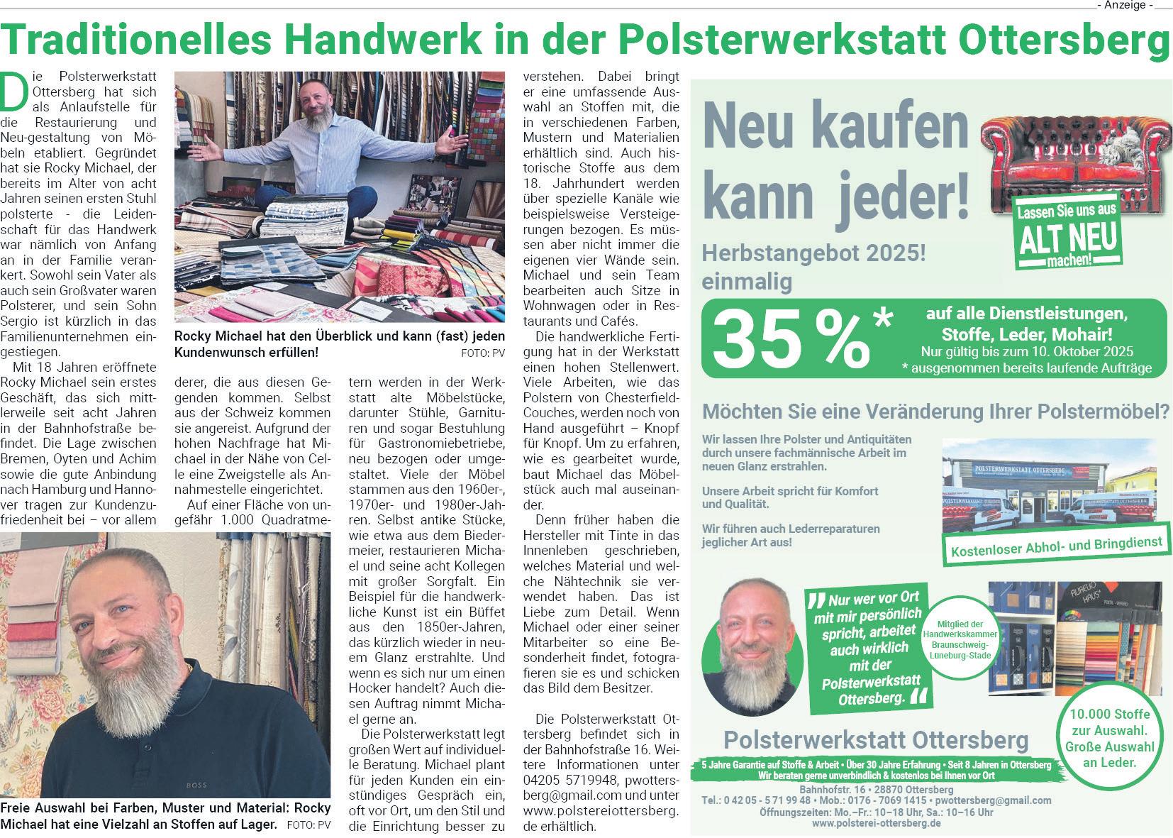 für die kommende Ausgabe zum Sonderpreis. Für diese Größe zahlen Sie nur 50 € + Mwst. Infos: Weser Report 042169055400 oder fliesstext@weserreport.de Kleinanzeigen für den Weser Report und Delme Report, Hamme/Wümme Report und Das BLV 0421-69055 400oder per E-Mail an fliesstext@weserreport.de