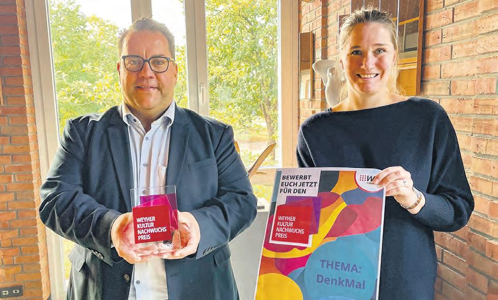 spielsweise auf einem Tonträger, Theater oder Tanz per Video. Die Beiträge sollten nicht mehr als 20 Minuten lang sein. Die Jury soll auch diesmal die Möglichkeit haben, sich das Werk im Original vor Ort oder live vorstellen zu lassen. Die Vergabe des Preises wird dann in der zweiten Jahreshälfte 2026 erneut öffentlich stattfinden. Der genaue Termin wird rechtzeitig bekanntgegeben. „Vom längeren Vorlauf versprechen wir uns diesmal noch mehr Quantität bei hoffentlich gleichbleibender Qualität“, sagt Hedda Stock. Außerdem will das Kulturbüro die Zeit nutzen, um Talente gezielt anzusprechen und zur Teilnahme zu ermutigen. Die Teilnahmebedingungen sind im Detail auch im Internet nachzulesen unter weyhe.de/wknp