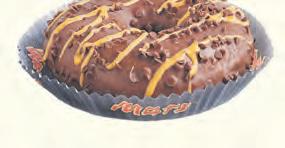 Mars-Donut* Hefegebäck mit Kakaopulver, überzogen mit Schokolade, dekoriert mit Milchschokoladentropfen und nach Karamell schmeckender Glasur 1kg = 17,37 75g Stück