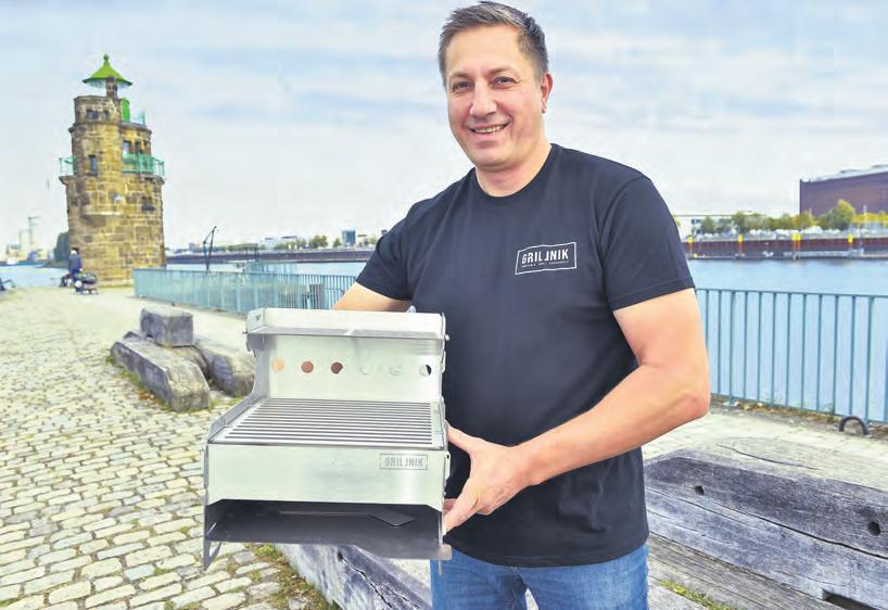 Bratwurst und Gemüsespieße am Osterdeich oder Steak und Grillkäse am Werdersee – in Bremen wird viel und gern an öffentlichen Orten gegrillt. Mit dem mobilen Grillnik hat Paul Nikonow seit Kurzem eine praktische Alternative zu klapprigen Dreibein- und umweltschädlichen Einweggrills ausgetüftelt. Seinen zusammensteckbaren Grill aus Edelstahl stellt Nikonow heute und morgen auf der Messe Grillgut auf der Bürgerweide vor. Auf die Idee kam der gelernte Koch schlicht und einfach, weil er selbst viel draußen in der Natur unterwegs ist und gern grillt: „Während des Lockdowns brauchte ich eine Beschäftigung. Ich begann mit ersten Entwürfen für einen hochwertigen mobilen Grill. Meine Kinder mögen lieber Pizza, also sollte der Grill auch als Backofen nutzbar sein“, erinnert sich Nikonow. Bevor er 1996 aus Russland nach Deutschland kam, studierte er ein Jahr lang Bauingenieurwesen. „Basteln und Dinge austüfteln sind neben Wandern und Grillen meine Leidenschaft“, schwärmt der 49-Jährige. In seinem Heimatland werde zudem immer – zu jeder Jahreszeit – gegrillt. Nur wenige Sekunden dauert es, bis der Grillnik aufgebaut und einsatzbereit ist – ohne Schrauben. Es ist kein Werkzeug notwendig. Auseinandergebaut ist er etwa so groß wie ein Laptop. Zur Hauptidee des mobilen Grills mit Backofen kamen inzwischen weitere Funktionen hinzu. Beispielsweise kann der Grillnik auf die Rückseite gelegt werden und