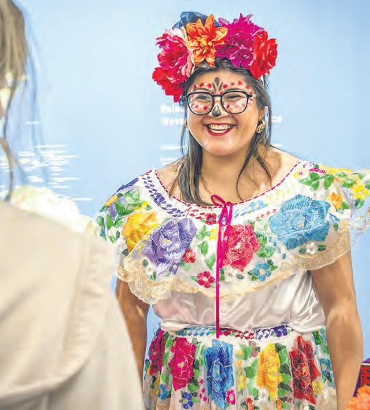 In verschiedenen MitmachStationen dürfen Besucher ihrer Kreativität freien Lauf lassen: Sie können traditionelle Cempasúchil-Papierblumen für die Ofrenda falten, Totenkopf-Figuren mit Acrylfarben bemalen oder Totenkopf-Marionetten basteln. Wer sich in eine lebendige Calavera verwandeln möchte, kann sich beim Facepainting in einen farbenprächtigen Totenkopf verwandeln und um den Look komplett zu machen einen