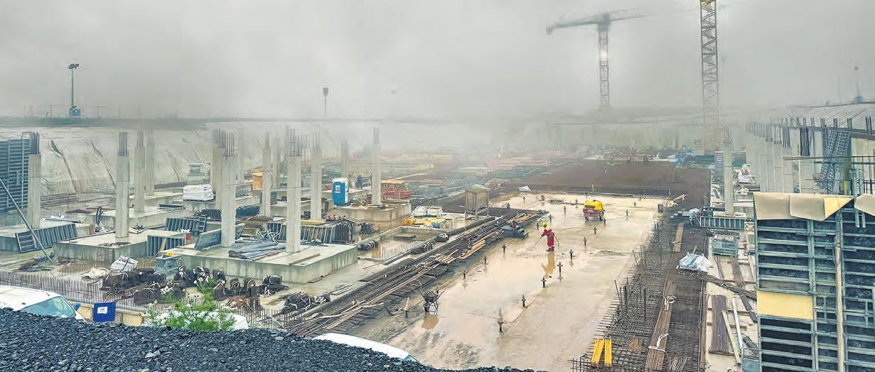 oberfläche. Genau dieser Ansatz ist aktuell sehr gut sichtbar.“ Die Arbeiten am Fundament verlaufen weiterhin zielgerichtet. Die Struktur des Tiefgeschosses nimmt bereits konkret Gestalt an, Stützpfeiler und erste Wandabschnitte sind gesetzt. „Die komplette Tragkonstruktion des Klinikgebäudes schreitet zügig voran. Unsere Priorität ist ein solides Fundament, das dauerhaft sicher steht“, erklärt Uwe Lorenz, Sprecher der Klinikverbund-Geschäftsführung.