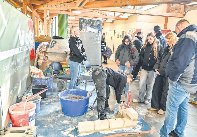 Besucher können auf der bib die unterschiedlichsten Tätigkeiten kennenlernen. Hier zeige Auszubildende eines Bauunternehmens wie eine Mauer entsteht. Foto: bib