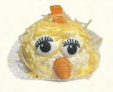 Aus eigener Herstellung: Küken »Old Amsterdam Style« Bällchen aus Frischkäse und Hartkäse, mit Zuckeraugen und Marzipan-Zucker-Möhre dekoriert 1kg = 17,90 100g