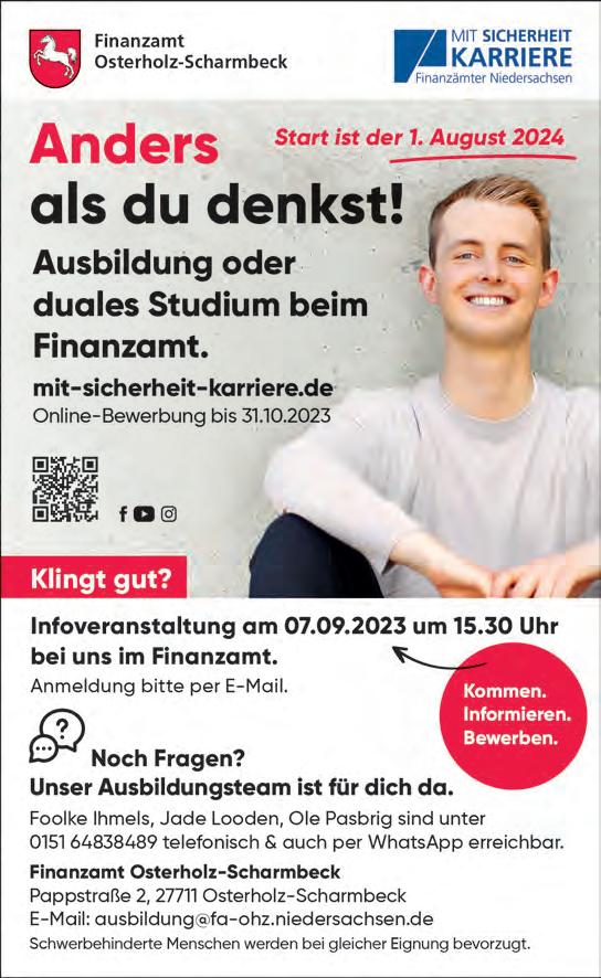 Alle weiteren Informationen finden Sie im Internet unter karriere.osterholz-scharmbeck.de/ ausbildung-und-studium/