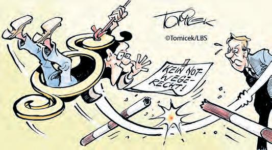 Blockierter Weg: Nachbar musste ihn zähneknirschend frei machen. Karikatur: Tomicek/LBS
