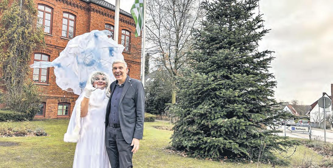 Die Schneefee (links) hat sich für das Wochenende des Weihnachtsmarkts viel vorgenommen. Bürgermeister Torsten Rohde freut sich auf weihnachtliches Wetter. Foto: Utke