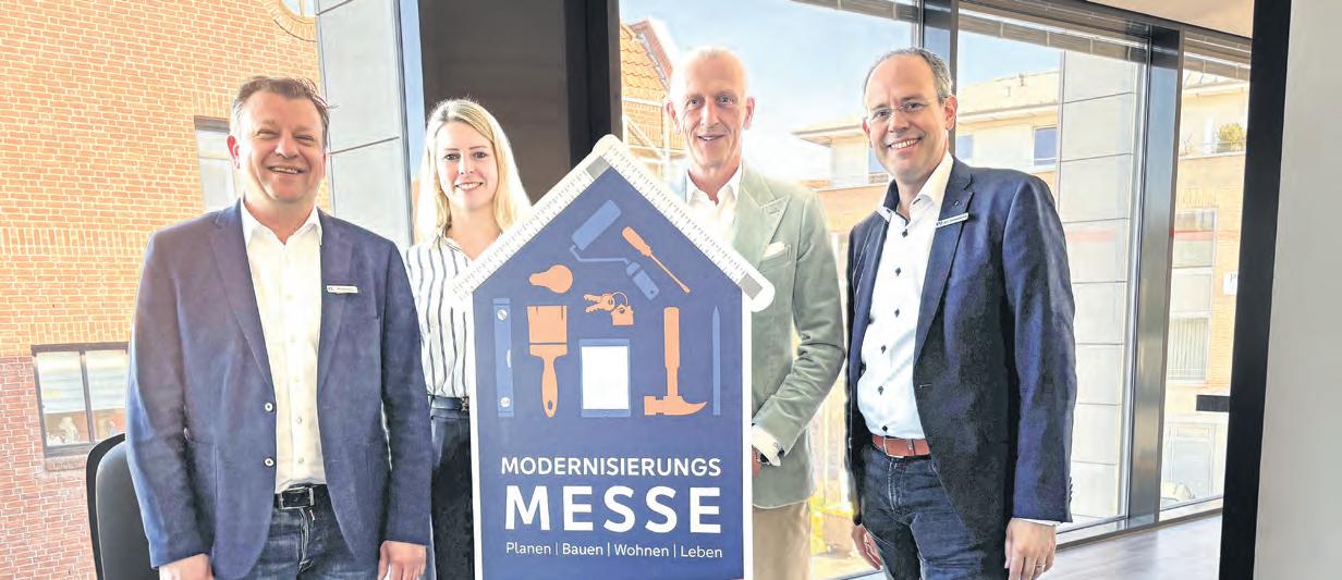 Thomas Hiller, Stefanie Kase, Christian Meyer-Hammerström und Jan Mackenberg (von links) präsentieren das Programm und neue Logo der Modernisierungsmesse in der Kreisstadt. Foto: Utke