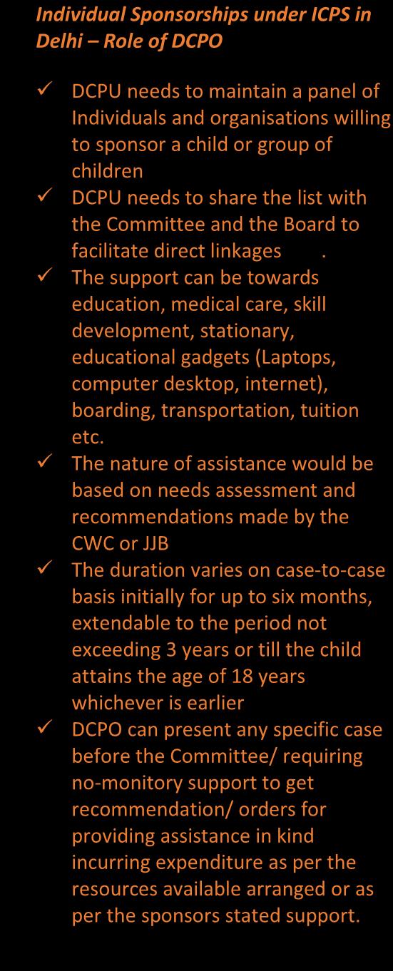 - Understand the background and concept of Sponsorship program as conceived by government or practising civil society organizations
