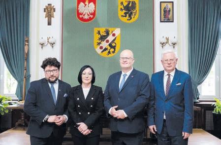 Na zdjęciu: Starosta oraz Wicestarosta - Pan Witold Reclaw (z prawej) oraz etatowi członkowie zarządu: Pani Iwona Szczygieł i Pan Marcin Drewa (z lewej)
