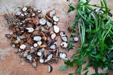 • Maak de paardenbloemwortel goed schoon. Het nog jonge frisse blad kun je ook gebruiken. Snijd de paardenbloemwortel en het blad in stukjes. Snijd de rode kool in smalle reepjes.