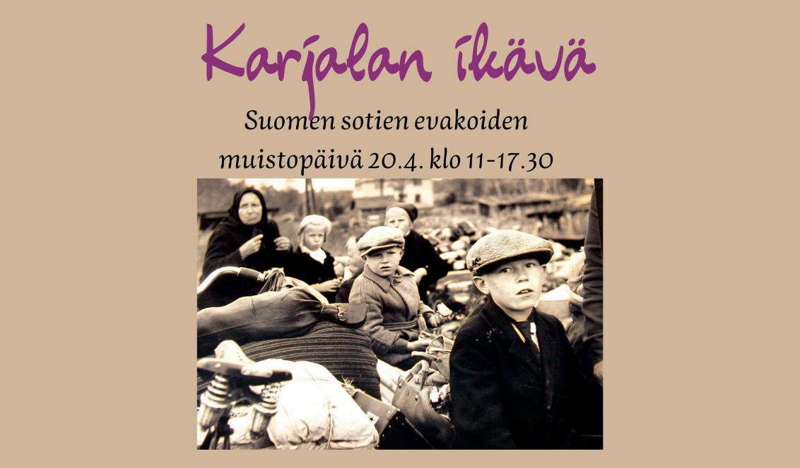 20.4. Karjalan ikävä – Suomen sotien evakoiden muistopäivä klo 11–17.30, mm. Eeva Riutamaa, Helena Markkanen, Tiina Sinkkonen, Niina Mangström ja Imatran NNKY:n kanteleryhmä Iki-ilo