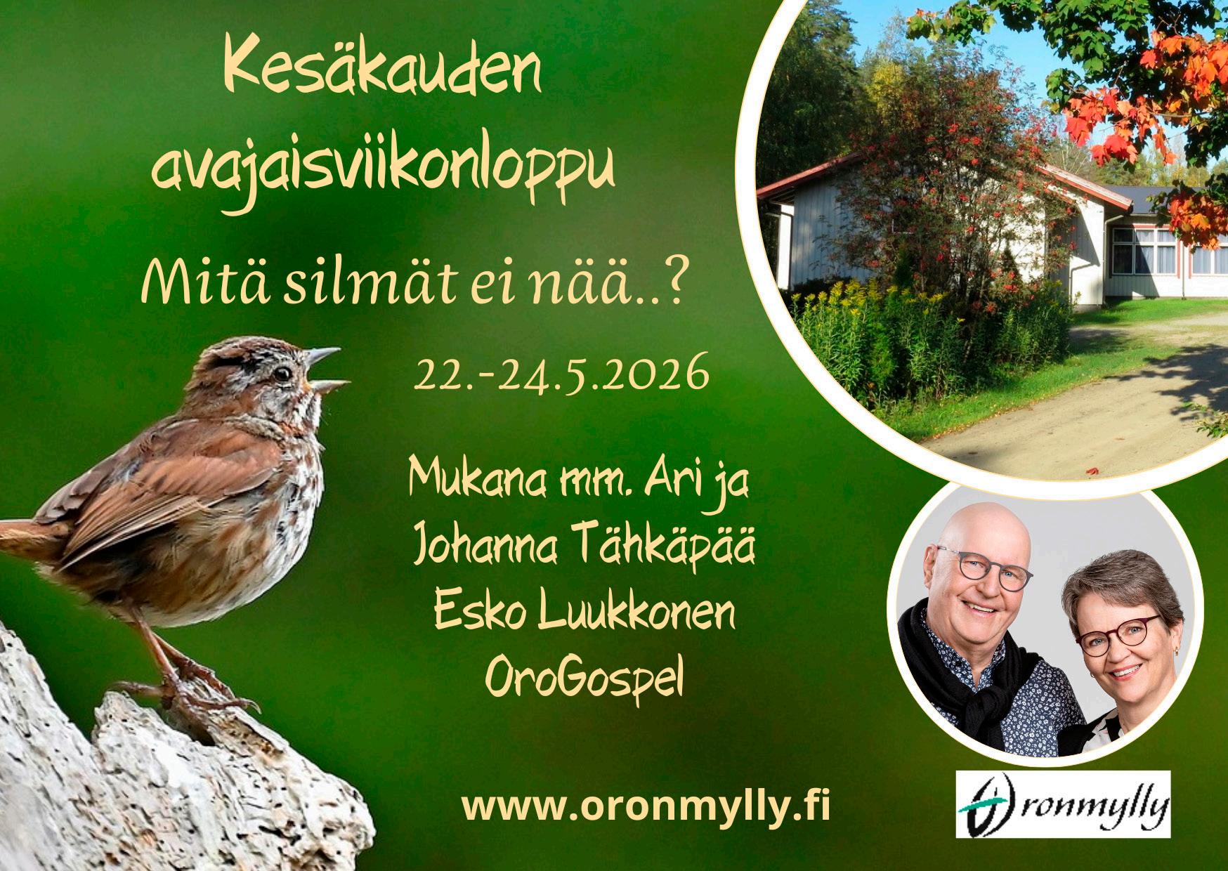 Elämme ajassa, jossa epävarmuus koskettaa monia. Siksi tarvitaan paikkoja, joissa voi hiljentyä, rukoilla ja saada rohkaisua. Haluamme, että Oronmylly on jatkossakin tällainen paikka – ei vain tapahtumien järjestäjä, vaan yhteisö, jossa jokainen saa kokea olevansa hyväksytty ja tervetullut.