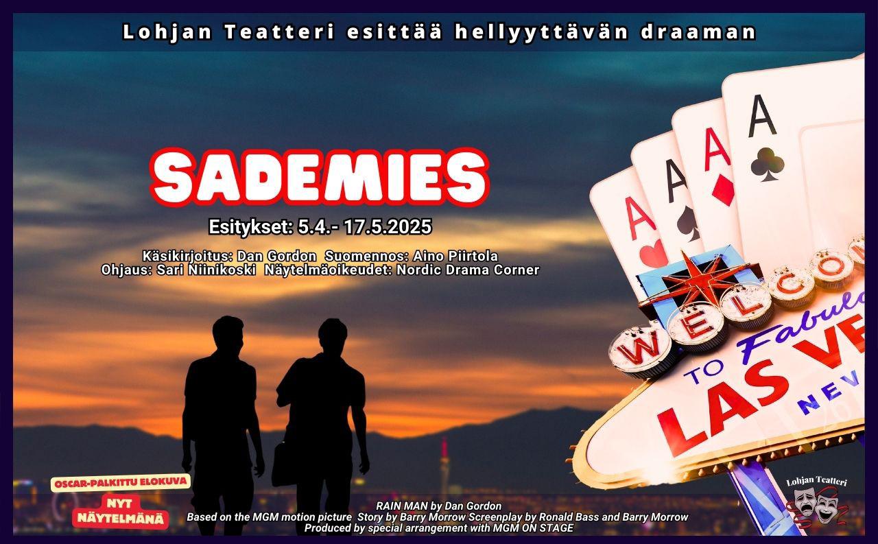 Näytelmä perustuu vuonna 1988 neljällä Oscarilla palkittuun Barry Morrow’n ja Ronald Bassin käsikirjoittamaan elokuvaan. Näytelmä on niittänyt suosiota myös Suomen teattereissa ja ympäri maailmaa. Hellyttävä kasvutarina veljeksistä, erilaisuudesta ja luottamuksesta! Charlie (Aivar Andrejev) on itsekeskeinen liikemies, jonka elämää ohjaa rahan ja menestyksen tavoittelu. Varakkaan perheen poika yllättyy melkoisesti, kun isän kuoltua testamentissa määrätäänkin miljoonaperintö hänen isoveljelleen Raymondille (Esa Koski), jonka olemassaolosta Charlie ei aiemmin ole edes tiennyt. Autistinen Raymond on viettänyt suurimman osan elämästään laitoshoidossa. Charlie ei aio kuitenkaan luopua perinnöstään suosiolla. Yllättävästä road tripistä muodostuu aivan erilainen kuin Charlie kuvitteli. Veljesten tutustuttua Charlie joutuu puntaroimaan, mikä tässä elämässä lopulta on tärkeintä. Tämä draama hymyilyttää, herkistää ja muistuttaa meitä siitä, kuinka tärkeää on ymmärtää erilaisuutta.
