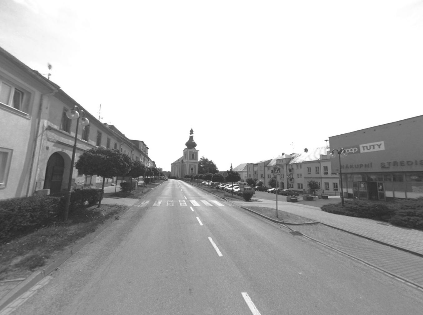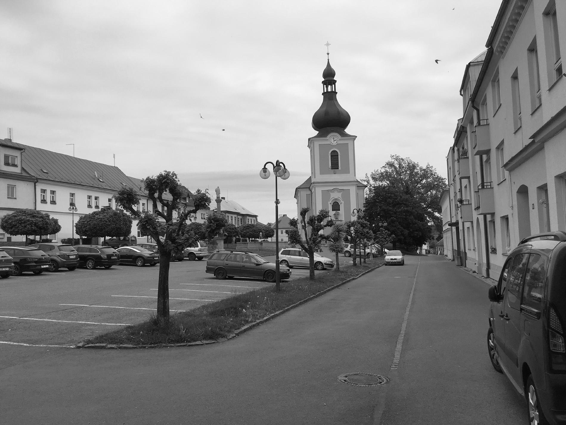 Kladruby village is connected to the Kladruby monastery with one main road. This historical axis has been part of a famous pilgrimage Camino de Santiago.