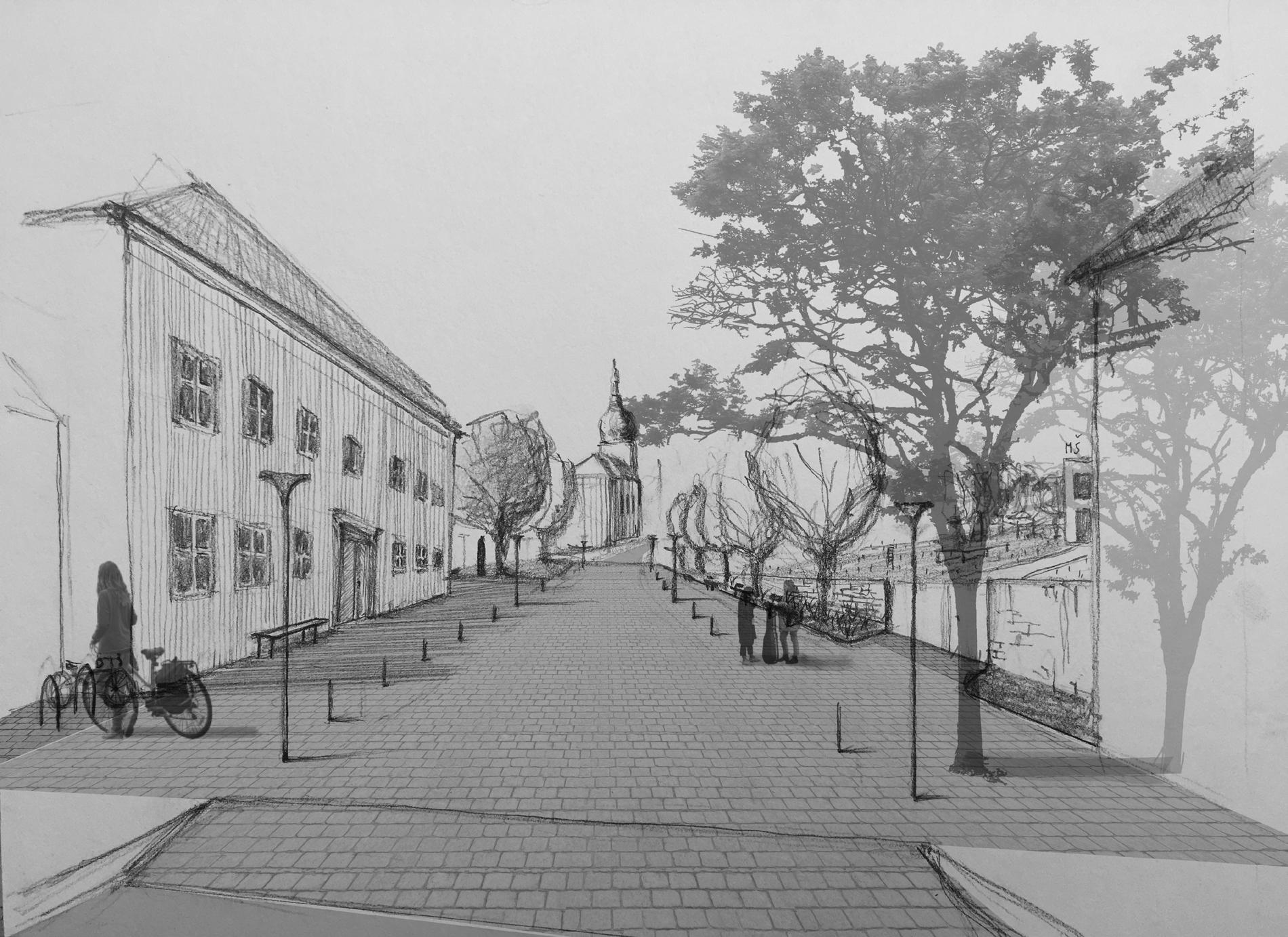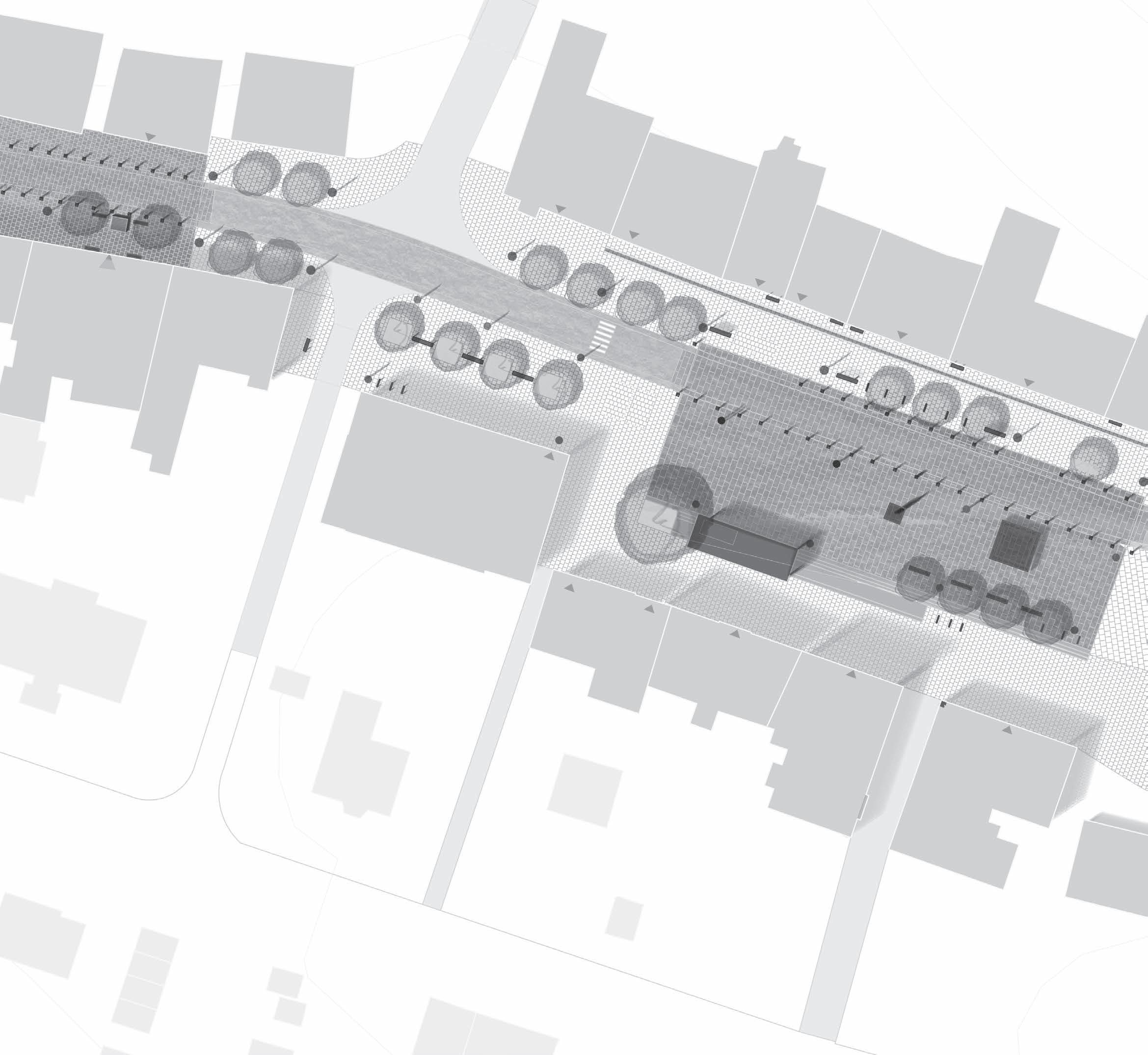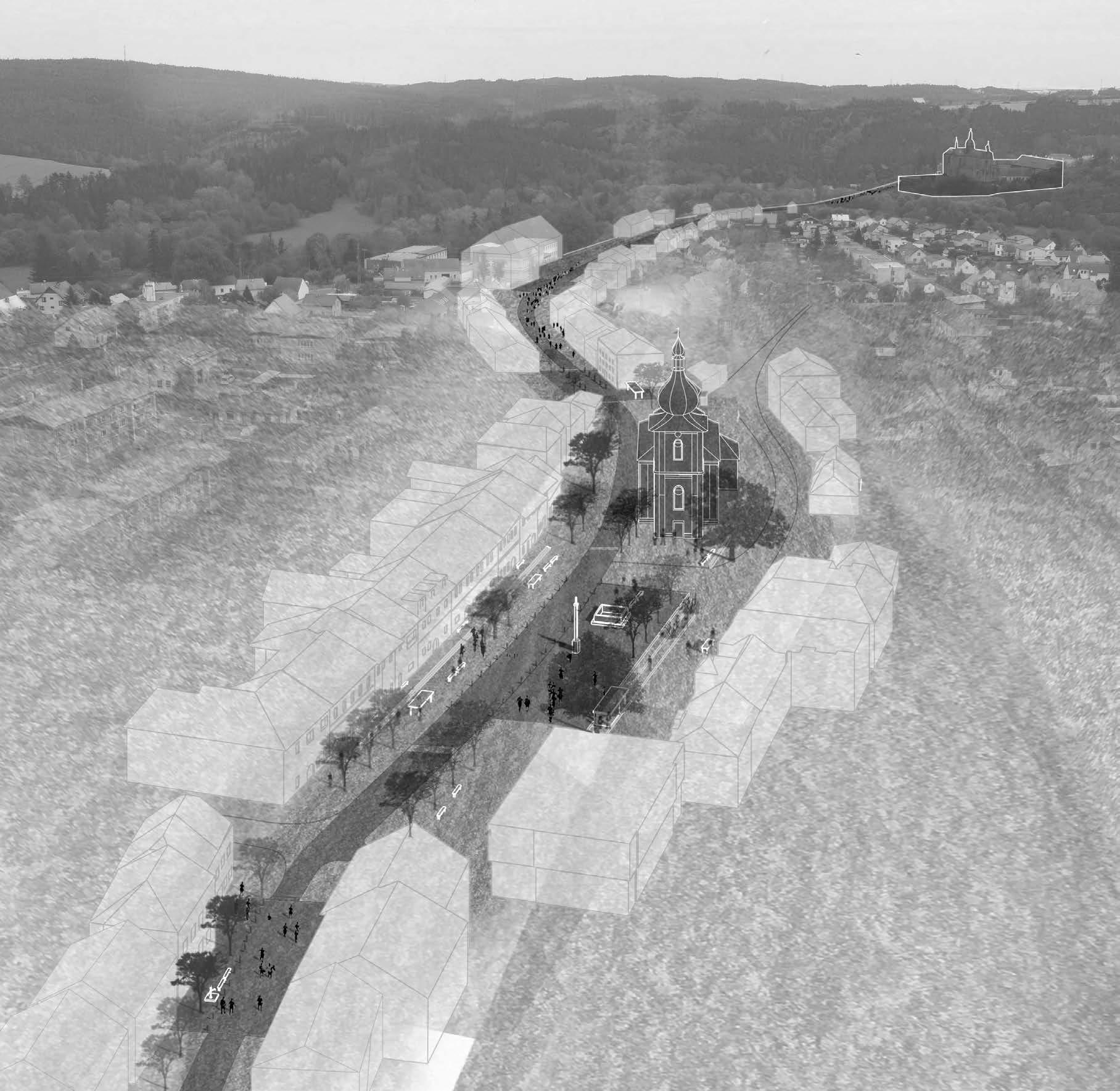 The project integrates the main road and the square into one. Revives the historical function of the pilgrimage path which formed the city itself.