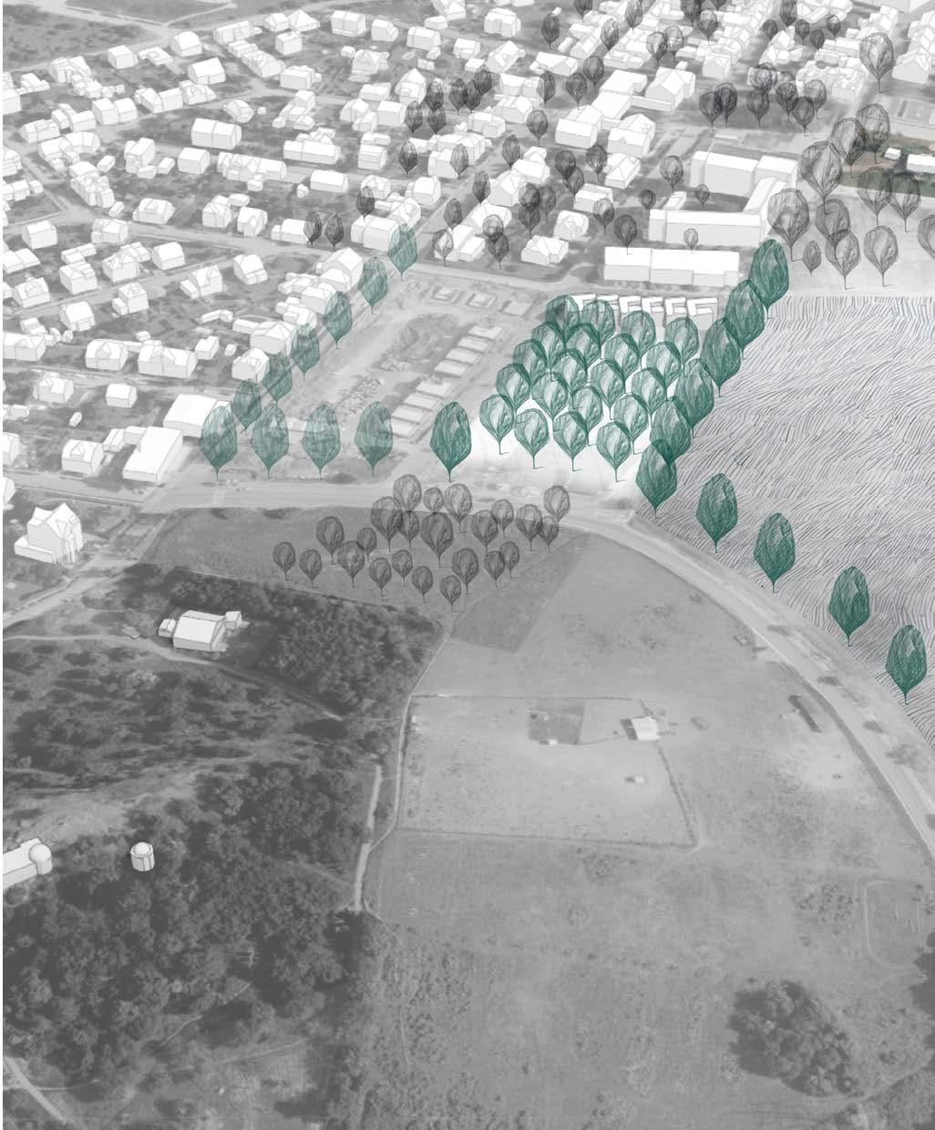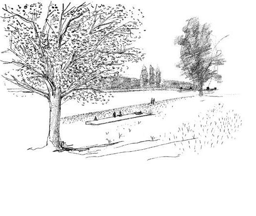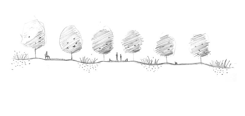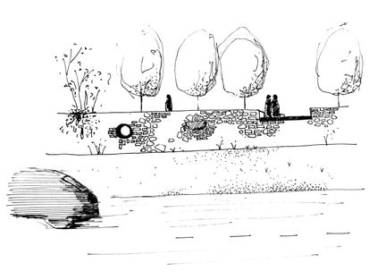 Návrh využívá široké parcely zaniklé cesty, která umožňuje přidruženého vegetačního pásu, jehož funkce mají rozmanitý charakter.