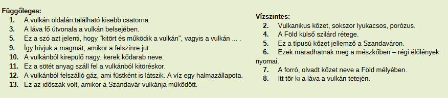 lávа – hamu – magma – kráter – központi kürtő – oldalcsatorna