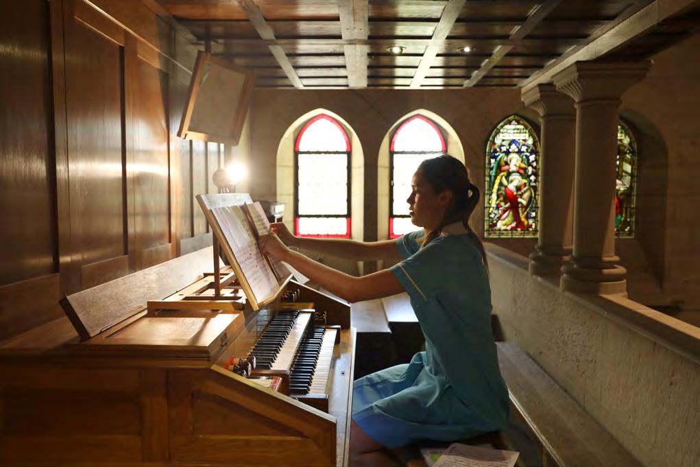 Our beautiful Chapel remained a key focus throughout this year. Morgan Irvin (Year 11, 2025), in her award-winning artwork, Chapelle Du Sacré-Cœur, described the chapel as a place filled with hope, light, history and divine love. Last year Morgan received the ACU School of Arts Award at the 2025 Clancy Religious Art Prize for this work, which combined an intricate drawing of the Chapel with three photographs documenting her temporal fabric installation.
