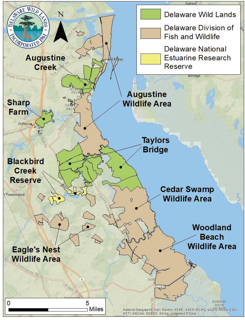 23,000 acres of contiguous protected land stretch along Delaware’s Bayshore in New Castle County, comprised of properties owned by Delaware Wild Lands, the DNREC Division of Fish and Wildlife, and the Delaware National Estuarine Research Reserve.