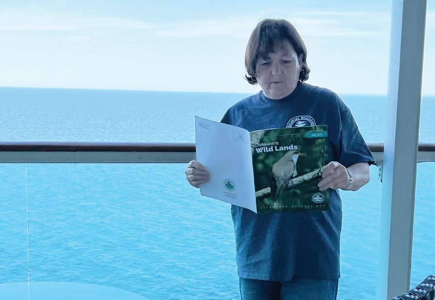 B:167 HEX:34ABA7 Delaware Wild Lands P.O. Box 505 • Odessa, Delaware 19730-0505 Delaware Wild Lands dewildlands.org Winter 2023 Wish List AA batteries AAA batteries 32GB + SD Cards Binoculars Rubber latex gloves (various sizes) Plastic totes Treated lumber – 2 x4"s , 4x4"s Treated plywood – ½" Assorted bolts and nuts ¼"and ½" Assorted screwdrivers Aluminum skiff boat Kayak No time to read now? Take the DWL newsletter with you! Joan Gitaitis, an avid donor and supporter of DWL, read hers while relaxing on a balcony during her cruise near the Bay of Fundy. Donate Today!