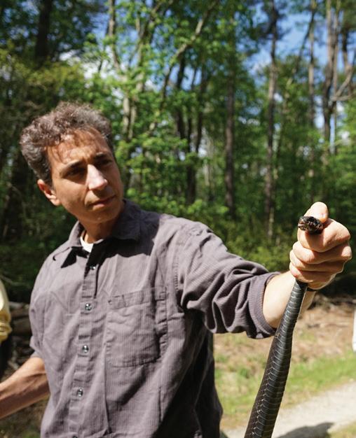 Dr. Eric Liebgold from Salisbury University holds a black racer.