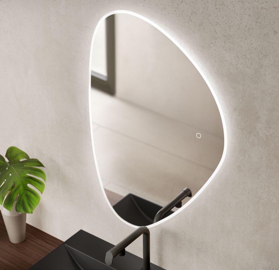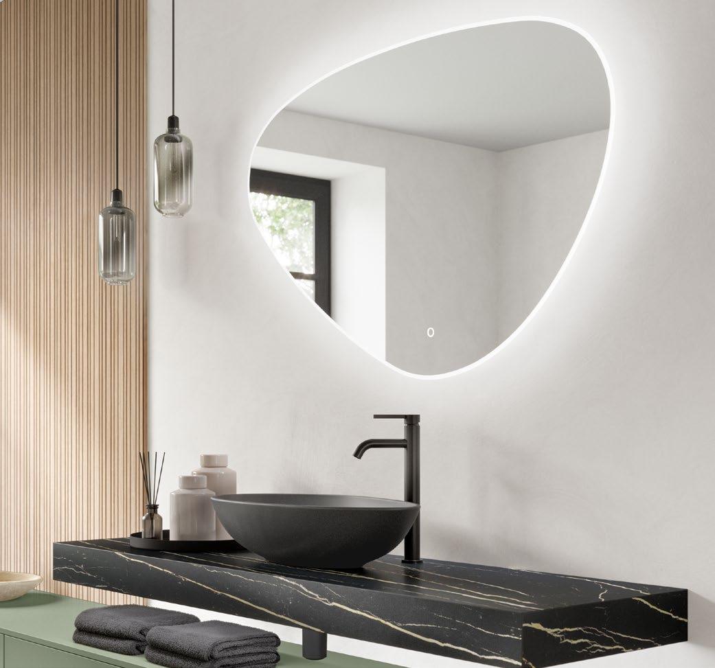 Vloeiende contouren en zachte lijnen bij elke blik in de spiegel en richting wastafel: organische vormen in de badkamer weerspiegelen de schoonheid en diversiteit van de natuur en creëren een positieve sfeer.