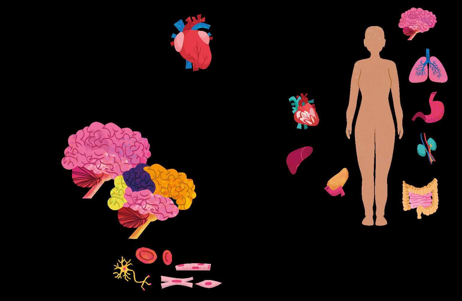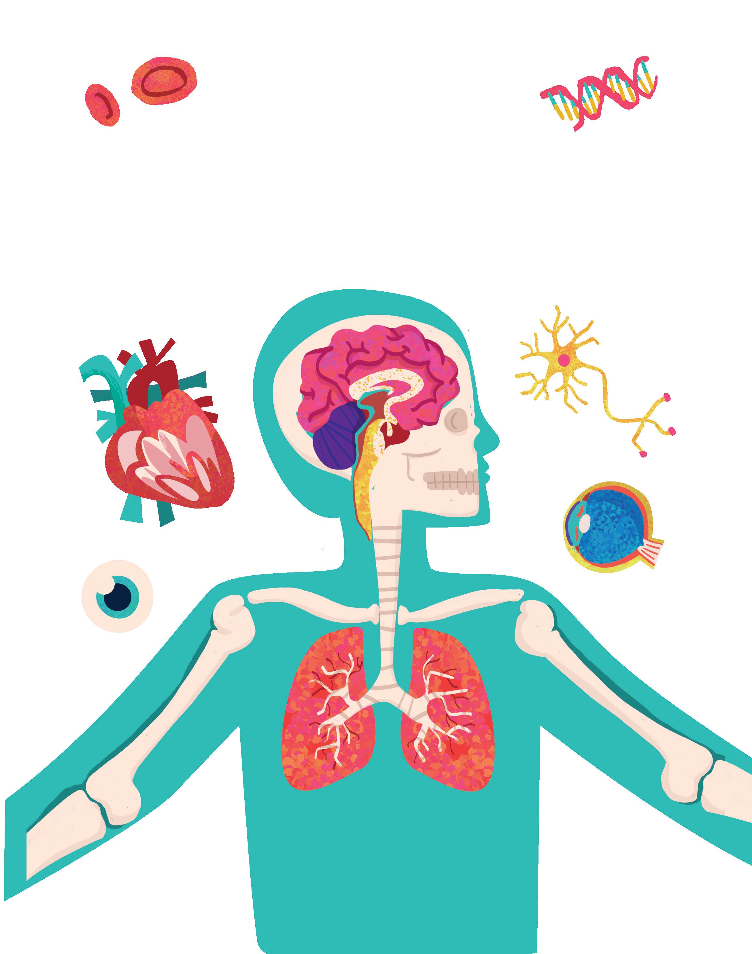 Бубрези пречишћавају крв. Неки делови тела, као што су кожа, нокти и коса, налазе се споља, док су кости, мишићи, витални органи и мозак скривени унутра.