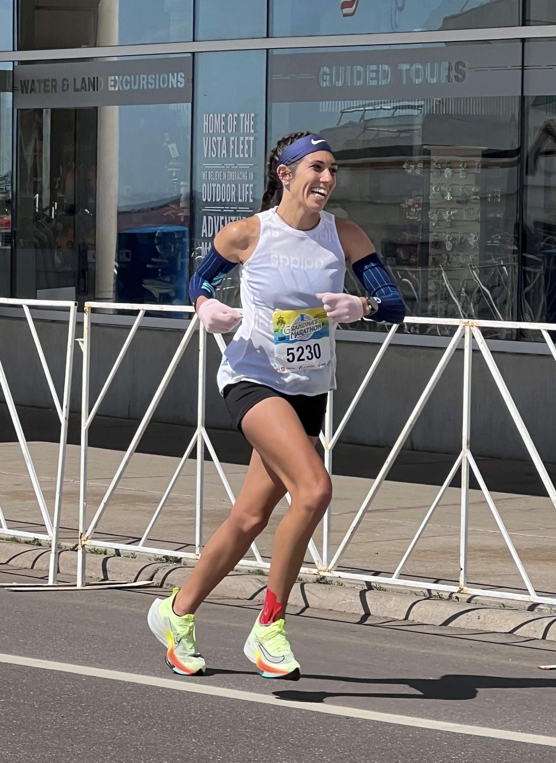 “I always try to set goals and run for something, and have a purpose,” she says. “I want the proud moment at the finish line, and that always gives me satisfaction.”