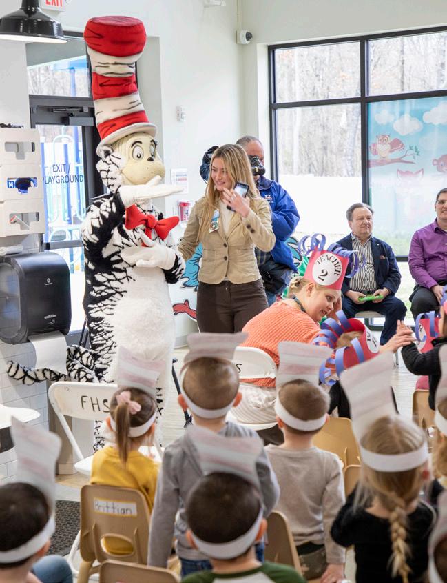 Freeman Cat in the Hat Dr. Seuss once said: “You’re never too old, too wacky, too wild, to pick up a book and read to a child.” Freeman Health System leaders –including Freeman President and CEO Paula Baker, Chief Financial Officer Steve Graddy and Dr. Adam Fahrenholtz – took this to heart when they read from their favorite Dr. Seuss classic to a roomful of Freeman Learning Center students. Also in attendance was the Cat in the Hat, a popular Dr. Seuss character who appears regularly in programming on Ozarks Public Television’s PBS Kids.