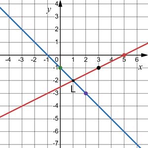 Відповідь: (1; 0); (0.5; −1.5).