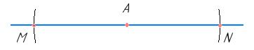 точці O; 2) Від точки K відкладаємо на прямій n два відрізки довжиною а см: OM = ON = а см;