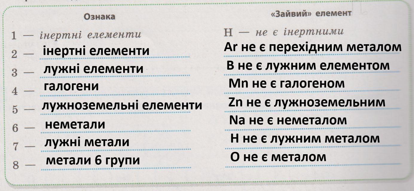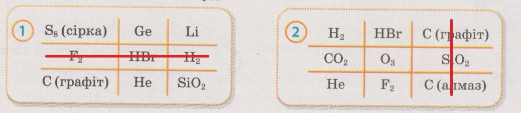 1. Визначити агрегатний стан кожної речовини за кімнатної температури.
