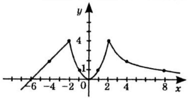 0 тобто ymin = 0, а найбільше – в точці, де |x| найбільше.