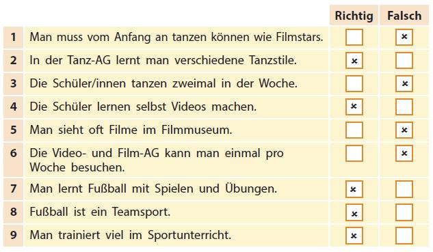 Aufgaben lösen, Ballspiele spielen, Computerprogramme lernen, den Lernstoff üben, Dialoge hören und spielen, die Fehler korrigieren, die Hausaufgaben prüfen, Experimente machen, Formeln lernen, rechnen, Regeln lernen, Texte lesen und nacherzählen, turnen, Übungen schreiben, Videos sehen, Vokabeln lernen