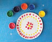Розмалюй картонну тарілочку пальчиковими фарбами, використовуючи елементи петриківського розпису.