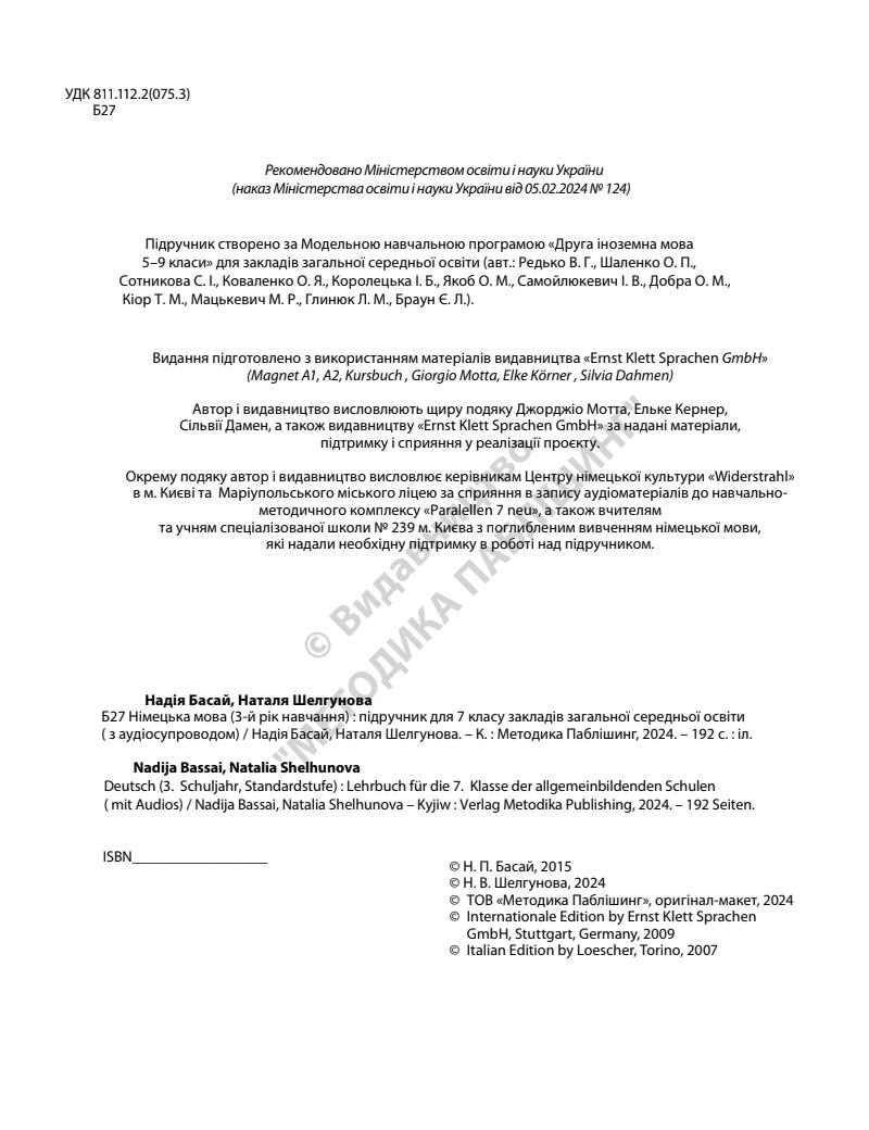 Німецька мова 7 клас Басай 2024