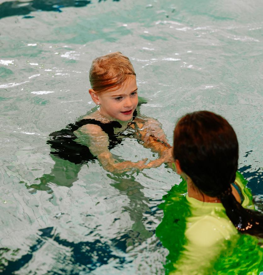 Vi lär barnen att simma genom lek. I början handlar det mycket om vattenvana.