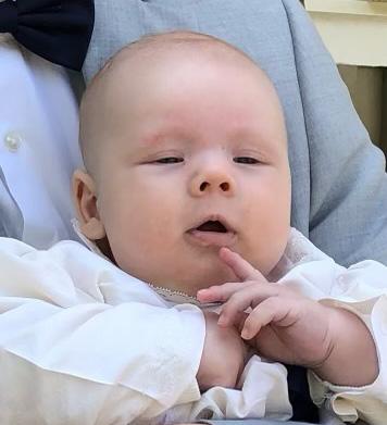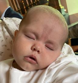 Malin Caremalm och Andreas ClaessonRoback pratade med församlingens trainee Johannes Hedell. ”Jätteroligt och mysigt att församlingen ordnar med partaj. De äldsta barnen har längtat och älskar att sjunga i kyrkan”, säger Malin. Med på bilden är också tvåårige Kian.