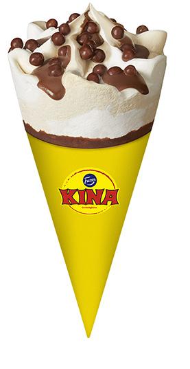 Vaniljgräddglass med fyllig kolasmak och spröda kexbitar, serverad i en klassisk strut och täckt med choklad.