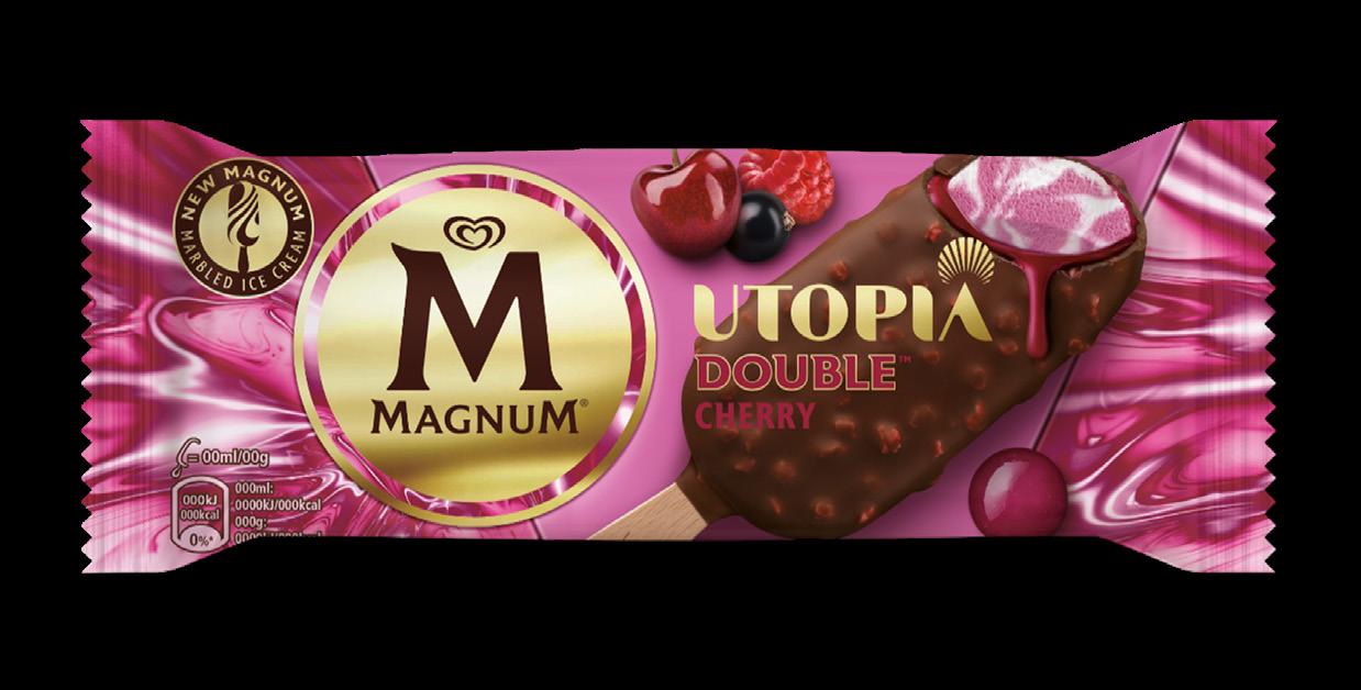 Magnum Utopia Double Hazelnut, GB Glace Hasselnöts-och karamellmandelglass med en saltad hasselnötssås, omsluten av vitt chokladöverdrag med karamelliserade bitar av hasselnöt, mandel och pistage. Michaela: God sälta och gott med karamellen. Men för mäktig.