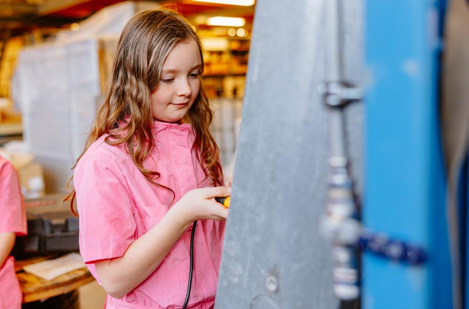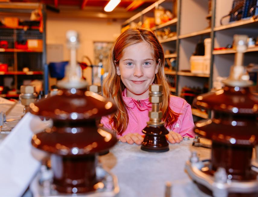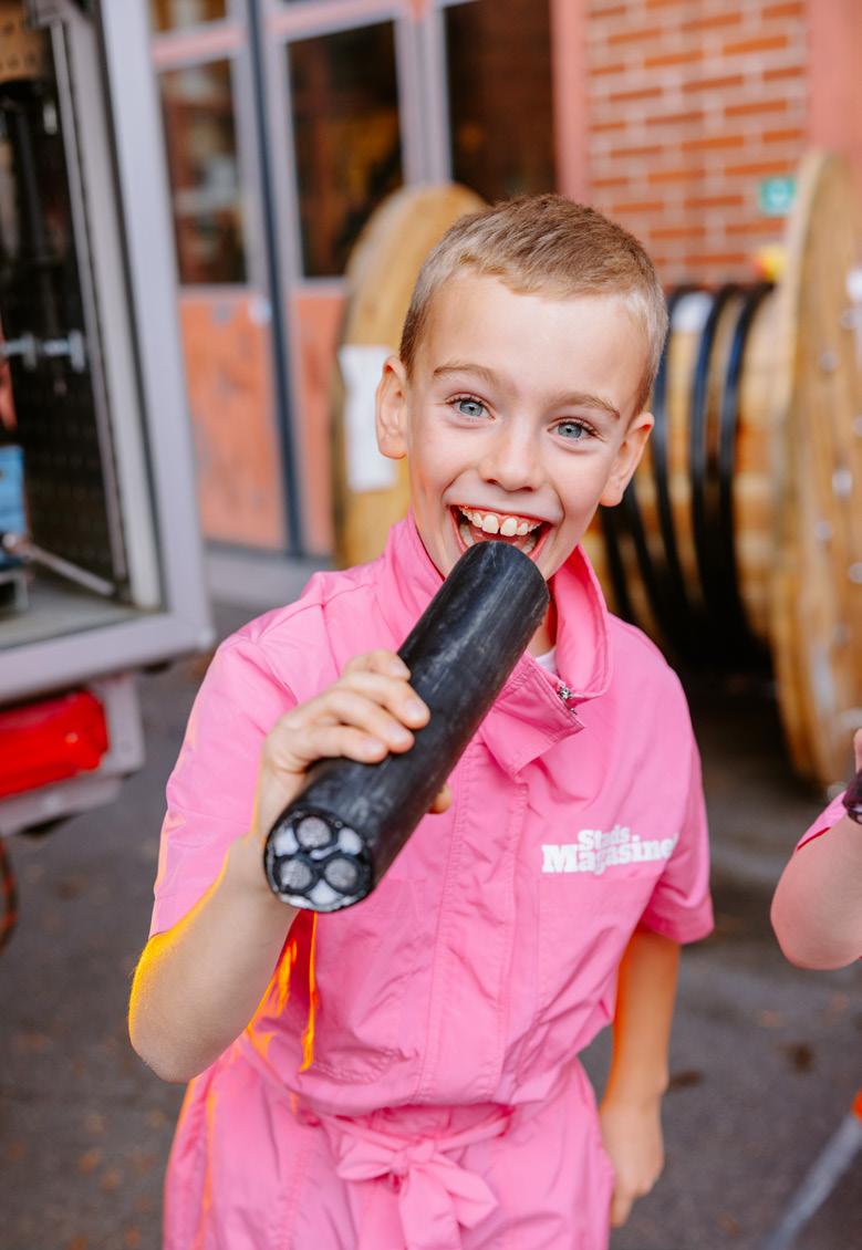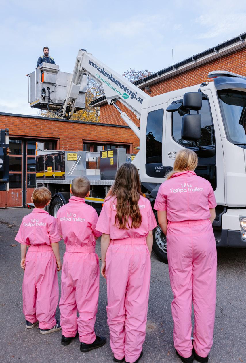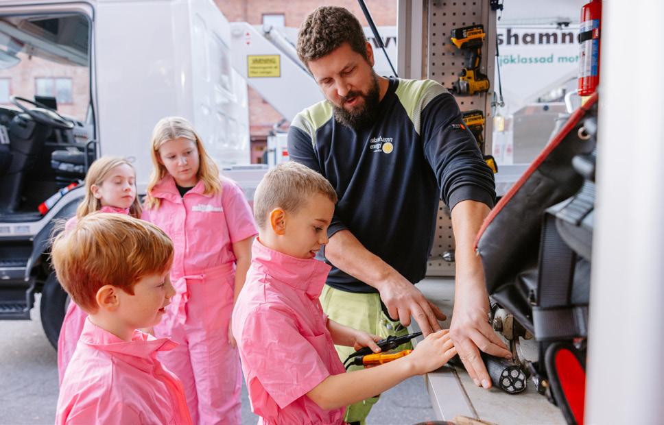 Barnen i Lilla testpatrullen blev imponerade när Martin Johansson, distributionselektriker på Oskarshamn Energi, tog fram kabelsaxen från arbetsbilen.