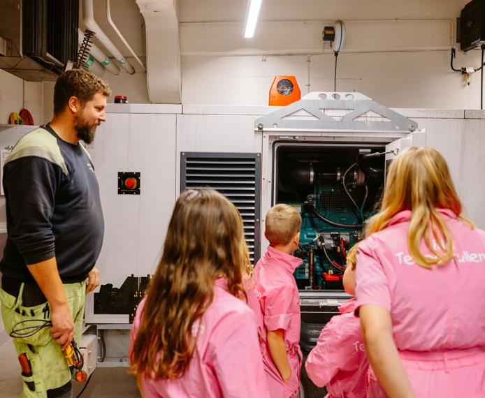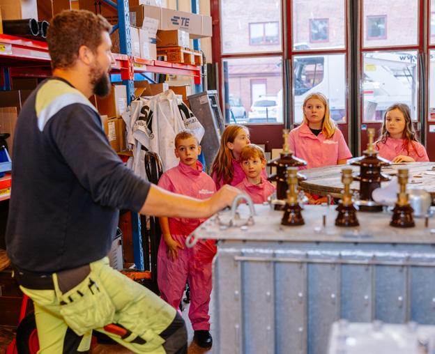 Teamledaren Sanna Ingvarsson Drottman berättar för barnen att Oskarshamn Energi ser till att det finns el