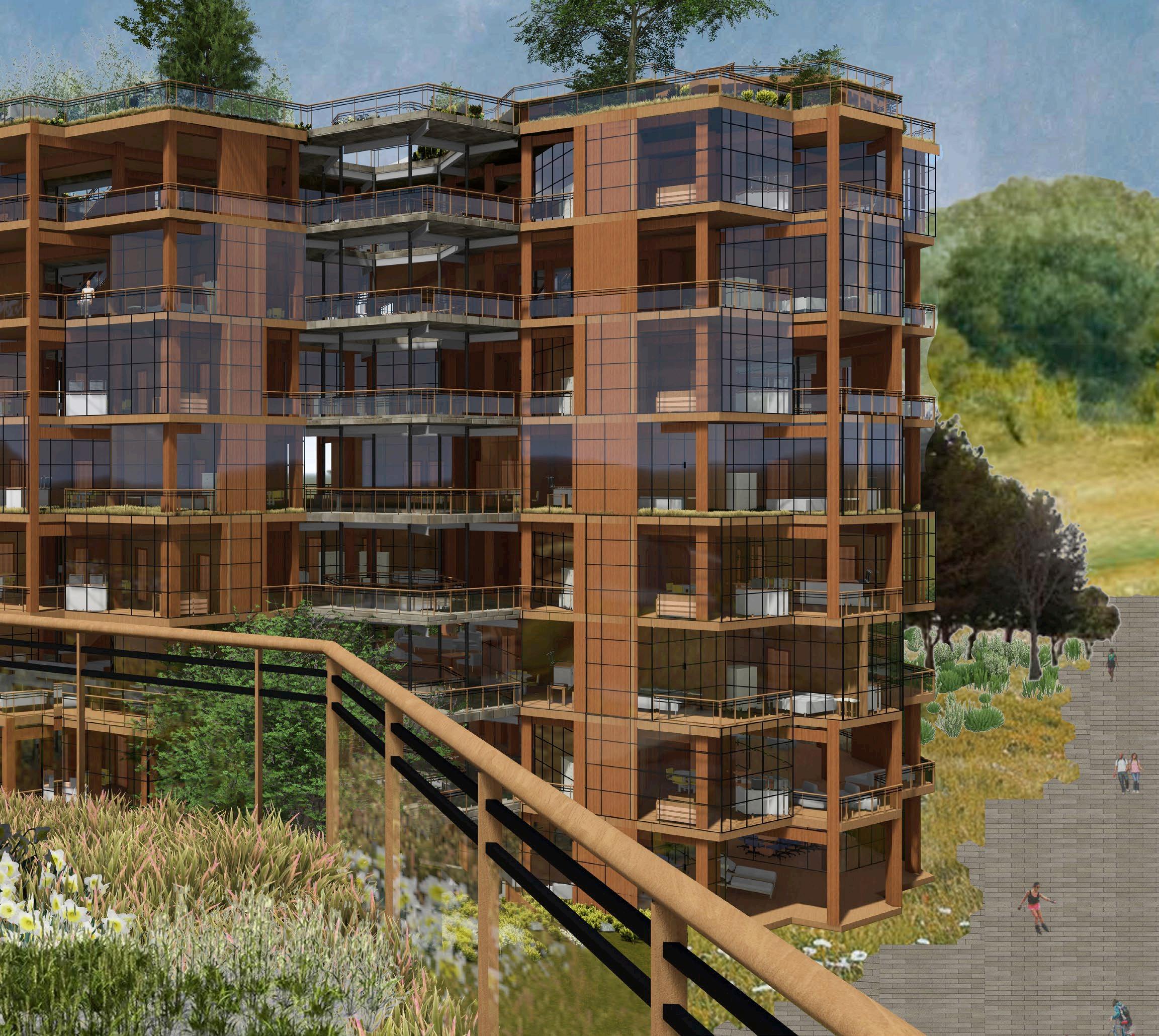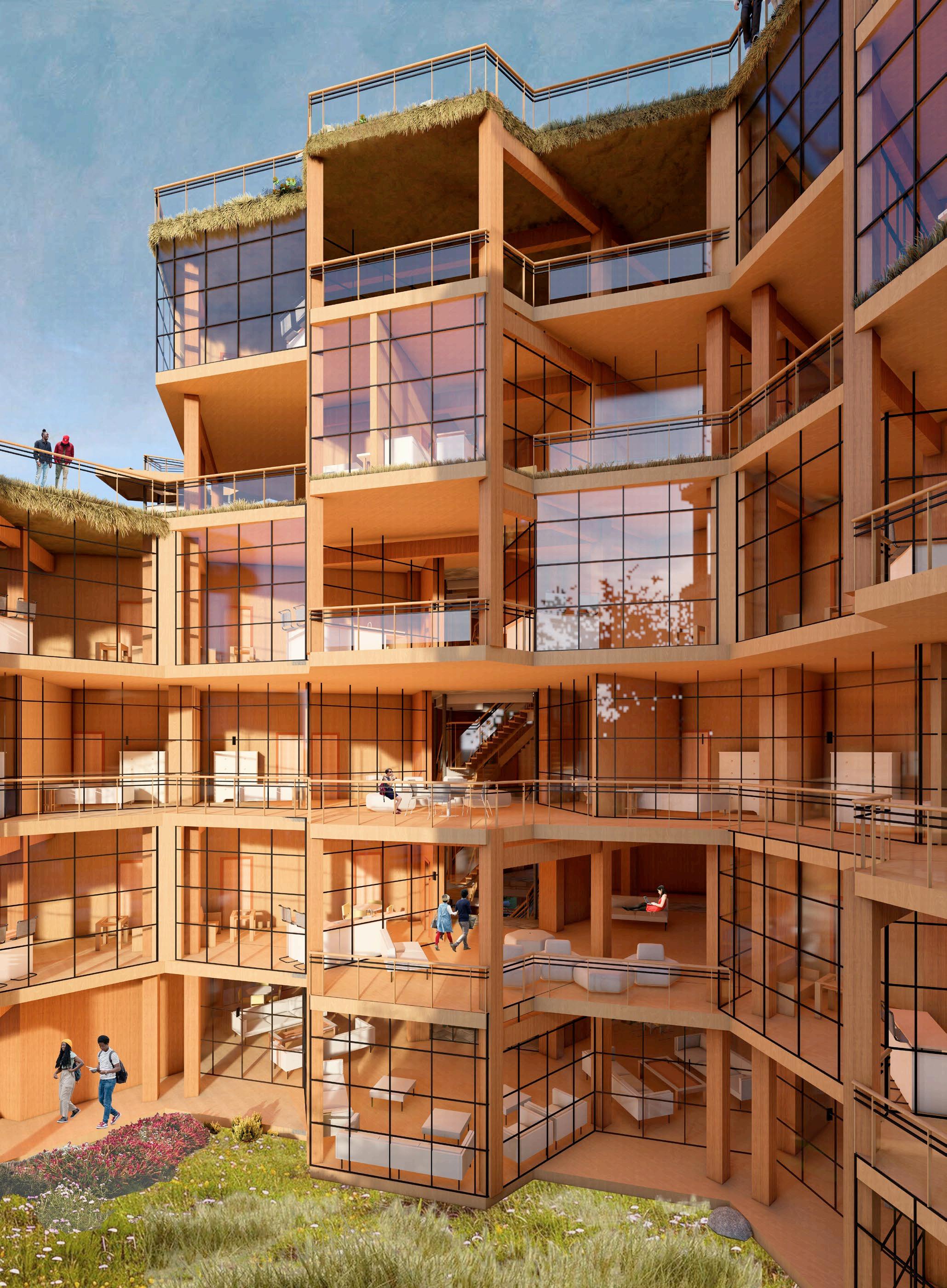 THE CAPSTONE STUDIO TASKED US wITH DESIGNING A GRADUATE STUDENT HOUSING qUAD fOR students in stanford’s new doerr school of sustainability. i worked on a team of ARCHITECTS, STRUCTURAL ENGINEERS, AND ENVIRONMENTAL ENGINEERS TO DESIGN BEYOND THE TYPICAL SCOPE Of AN ARCHITECTURAL STUDIO, INTEGRATING DETAILED STRUCTURAL AND ENVIronmental components into the final product. in my role as architect, i designed the quad’s layout, the unit layouts, the circulation system, and how each tower snaps together. i also modeled the project in revit and generated all final architectural images through rendering and the adobe suite. my architectural partner sofie and i wORKED TOGETHER TO DESIGN THE SHAPE AND HEIGHT Of EACH TOwER, AS wELL AS THE STACKing pattern of the units.