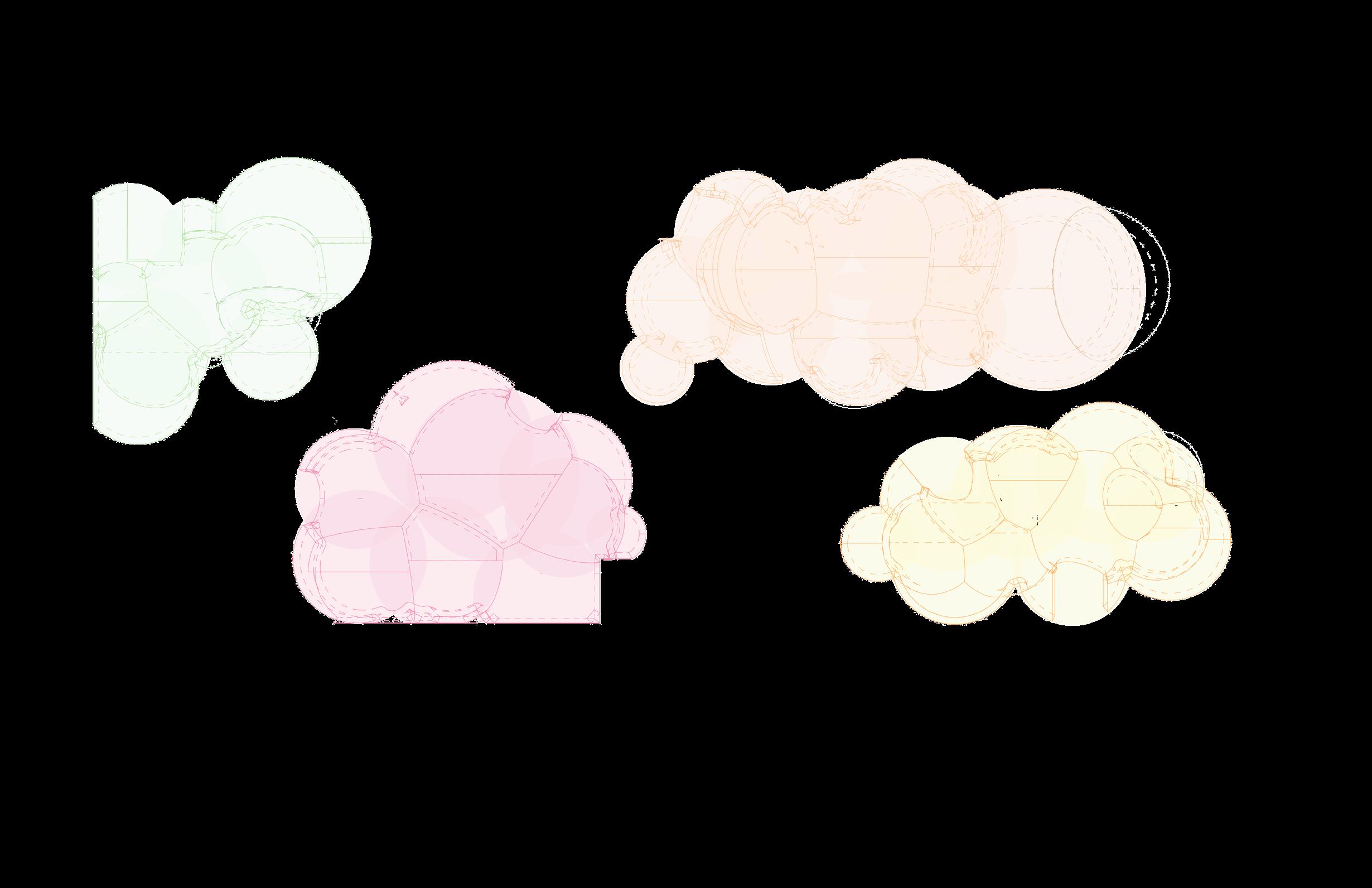 in addition to the site’s historical and contemporary context, i considered the strict programmatic requirements for a branch library and the site context. finally, i settled on the emotions i wanted to evoke with this project: nostalgia, playfulness, and IMAGINATION, wHICH I VISUALIzED AS AMORPHOUS fORMS SUCH AS BUBBLES AND CLOUDS AND which directly influenced the building’s form.