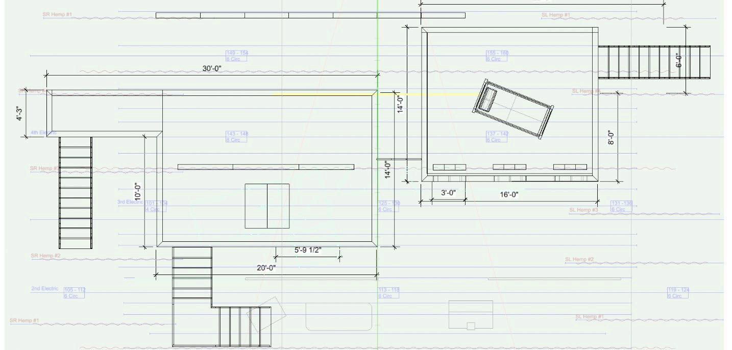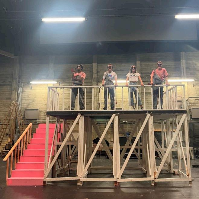 ACROSS PRODUCTIONS AT fRENCH wOODS fESTIVAL Of THE PERfORMING ARTS, STANfORD, AND independent projects, my scenic work explores how environments can support performances under real-world constraints. working on fast-paced timelines and within SHARED OR UNCONVENTIONAL THEATER SPACES, I DEVELOPED DESIGNS THAT PRIORITIzE ADAPTability, collaboration, and audience experience. projects ranged from retrofuturist, MODULAR SETS THAT ENABLED RAPID CHANGEOVERS BETwEEN MULTIPLE SHOwS TO IMMERSIVE THRUST-STAGE ENVIRONMENTS THAT REIMAGINED AUDIENCE SEATING AS PART Of THE SCENIC world. rather than pursuing strict realism, my designs often lean into abstraction, whimsy, and visual metaphor alongside scenic design, i frequently acted as technical DIRECTOR, CREATING CAD DRAwINGS, PAINT ELEVATIONS, AND BUILD SCHEDULES, THEN LEADING build crews while managing budgets and safety approvals.