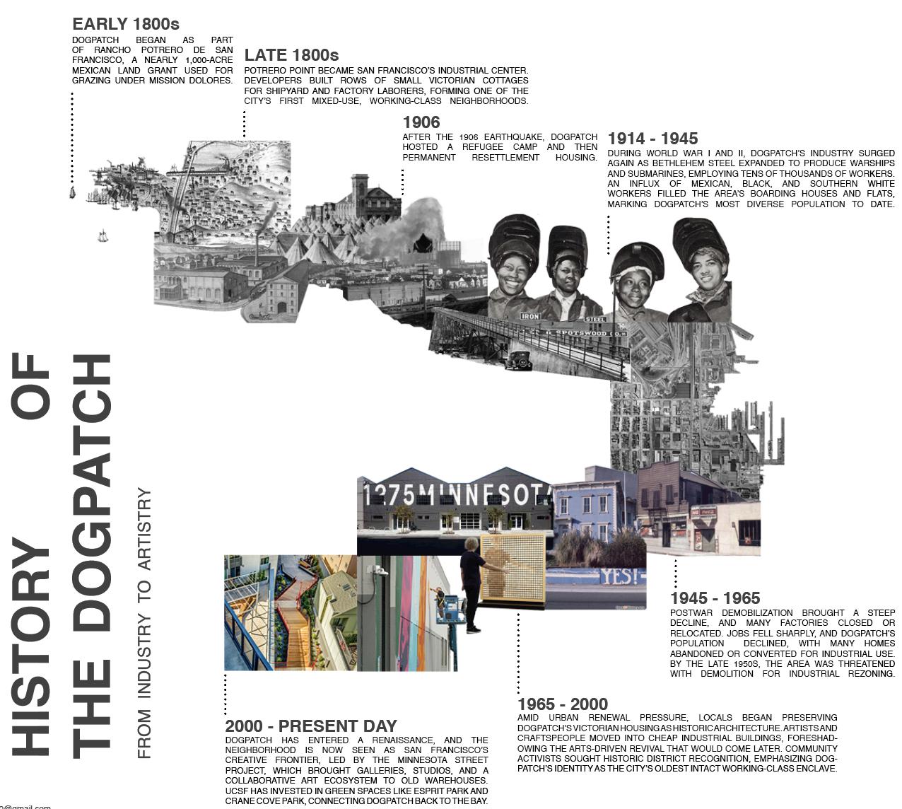 after learning more about the dogpatch neighborhood’s transformation from an industrial hub to an artistic haven, my objective became to reference the neighborhood’s history by incorporating industrial design elements while also supporting the area’s continued evolution.